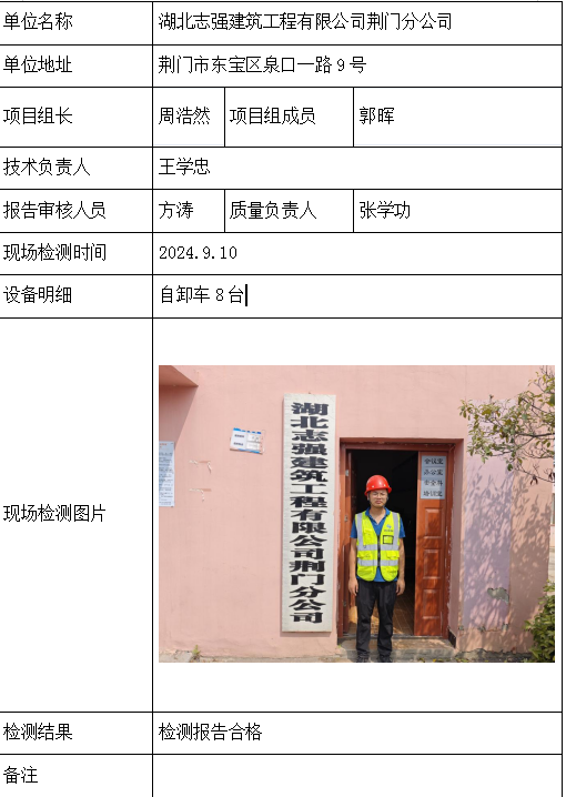 湖北志强建筑工程有限公司荆门分公司2026/04/102024年检测检验项目 00 上一篇: 永丰县鸿特五金贸易有限公司下一篇: 湖北志强建筑工程有限公司 相关推荐 黄梅龙源石膏有限公司 2026/04/13 2 查看全文 湖北威泰绿建科技有限公司 2026/04/13 3 查看全文 保康县鑫润矿业有限责任公司康家沟磷矿一采区 2026/04/13 3 查看全文 湖北杉树垭矿业有限公司 2026/04/13 2 查看全文 您好!请登录 点击取消回复 称呼: 邮箱: 点击这里取消回复。