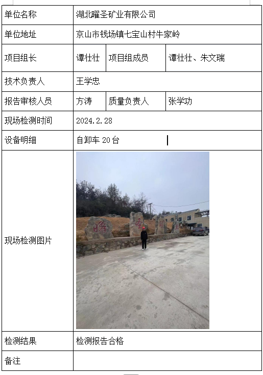湖北曜圣矿业有限公司2026/04/102024年检测检验项目 00 上一篇: 华新水泥(武穴)有限公司下一篇: 大冶市大志山矿业有限责任公司 相关推荐 黄梅龙源石膏有限公司 2026/04/13 2 查看全文 湖北威泰绿建科技有限公司 2026/04/13 3 查看全文 保康县鑫润矿业有限责任公司康家沟磷矿一采区 2026/04/13 3 查看全文 湖北杉树垭矿业有限公司 2026/04/13 2 查看全文 您好!请登录 点击取消回复 称呼: 邮箱: 点击这里取消回复。
