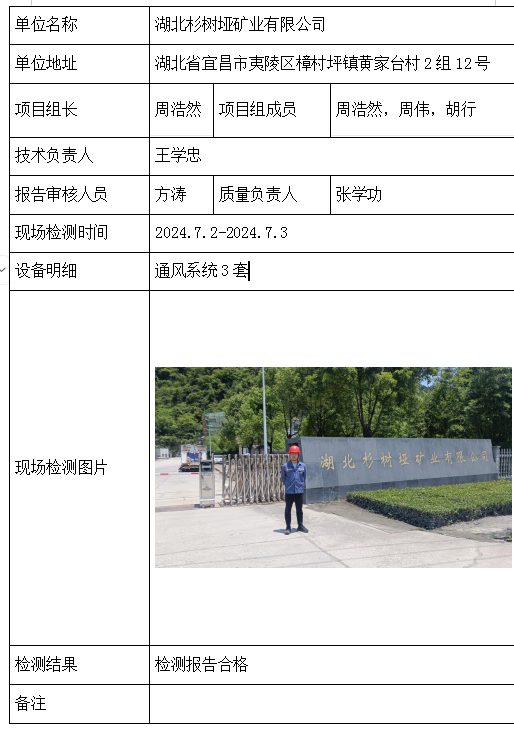 湖北杉树垭矿业有限公司2026/04/102024年检测检验项目 00 上一篇: 武钢资源集团程潮矿业有限公司龙起采区下一篇: 保康县保丰矿业有限公司石灰山磷矿Ⅲ采区 相关推荐 黄梅龙源石膏有限公司 2026/04/13 2 查看全文 湖北威泰绿建科技有限公司 2026/04/13 3 查看全文 保康县鑫润矿业有限责任公司康家沟磷矿一采区 2026/04/13 3 查看全文 湖北杉树垭矿业有限公司 2026/04/13 2 查看全文 您好!请登录 点击取消回复 称呼: 邮箱: 点击这里取消回复。