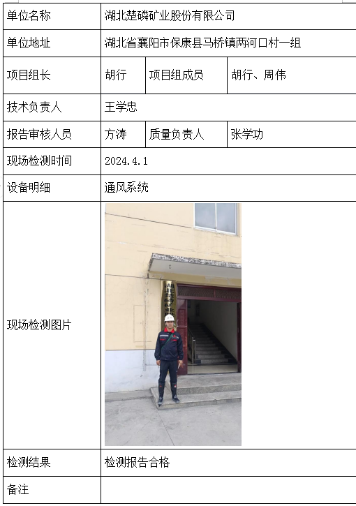 湖北楚磷矿业股份有限公司2026/04/102024年检测检验项目 00 上一篇: 大冶市大箕铺镇石家堍马石头硅灰石矿下一篇: 湖北宜安联合实业有限责任公司麻坪磷矿 相关推荐 黄梅龙源石膏有限公司 2026/04/13 5 查看全文 湖北威泰绿建科技有限公司 2026/04/13 6 查看全文 保康县鑫润矿业有限责任公司康家沟磷矿一采区 2026/04/13 5 查看全文 湖北杉树垭矿业有限公司 2026/04/13 4 查看全文 您好!请登录 点击取消回复 称呼: 邮箱: 点击这里取消回复。