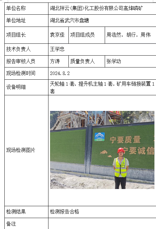 湖北祥云(集团)化工股份有限公司高烽磷矿2026/04/102024年检测检验项目 00 上一篇: 湖北三宁矿业有限公司挑水河磷矿东部矿段896工区下一篇: 五矿二十三冶建设集团有限公司 相关推荐 黄梅龙源石膏有限公司 2026/04/13 2 查看全文 湖北威泰绿建科技有限公司 2026/04/13 3 查看全文 保康县鑫润矿业有限责任公司康家沟磷矿一采区 2026/04/13 3 查看全文 湖北杉树垭矿业有限公司 2026/04/13 2 查看全文 您好!请登录 点击取消回复 称呼: 邮箱: 点击这里取消回复。