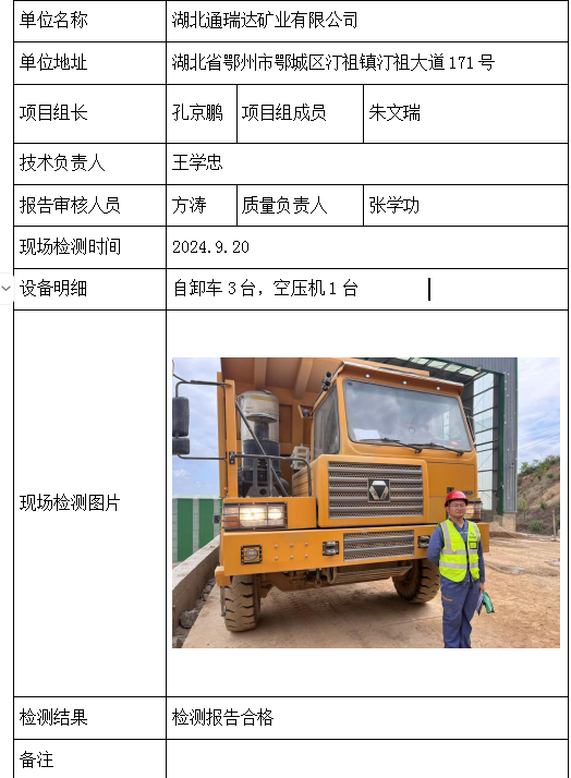 湖北通瑞达矿业有限公司2026/04/102024年检测检验项目 00 上一篇: 恩施州腾龙水泥有限责任公司恩施市甘溪矿区三堡洼矿段水泥用灰岩矿下一篇: 谷城县石花红马庙碎石有限公司 相关推荐 黄梅龙源石膏有限公司 2026/04/13 2 查看全文 湖北威泰绿建科技有限公司 2026/04/13 3 查看全文 保康县鑫润矿业有限责任公司康家沟磷矿一采区 2026/04/13 3 查看全文 湖北杉树垭矿业有限公司 2026/04/13 2 查看全文 您好!请登录 点击取消回复 称呼: 邮箱: 点击这里取消回复。