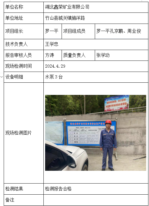 湖北鑫荣矿业有限公司2026/04/102024年检测检验项目 30 上一篇: 湖北兴顺矿业有限公司树崆坪磷矿下一篇: 湖北东圣化工集团东达矿业有限公司晒旗河磷矿 相关推荐 黄梅龙源石膏有限公司 2026/04/13 5 查看全文 湖北威泰绿建科技有限公司 2026/04/13 6 查看全文 保康县鑫润矿业有限责任公司康家沟磷矿一采区 2026/04/13 5 查看全文 湖北杉树垭矿业有限公司 2026/04/13 4 查看全文 您好!请登录 点击取消回复 称呼: 邮箱: 点击这里取消回复。
