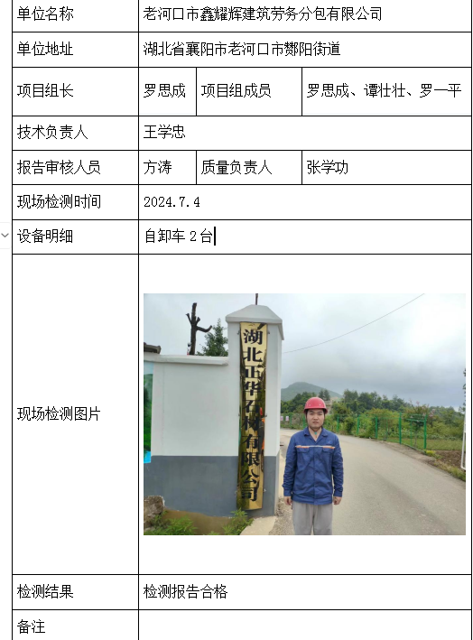 老河口市鑫耀辉建筑劳务分包有限公司2026/04/102024年检测检验项目 00 上一篇: 保康县保丰矿业有限公司石灰山磷矿Ⅲ采区下一篇: 葛洲坝松滋水泥有限公司月峰山矿山 相关推荐 黄梅龙源石膏有限公司 2026/04/13 2 查看全文 湖北威泰绿建科技有限公司 2026/04/13 3 查看全文 保康县鑫润矿业有限责任公司康家沟磷矿一采区 2026/04/13 3 查看全文 湖北杉树垭矿业有限公司 2026/04/13 2 查看全文 您好!请登录 点击取消回复 称呼: 邮箱: 点击这里取消回复。