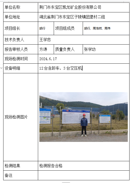 荆门市东宝区凯龙矿业股份有限公司2026/04/102024年检测检验项目 00 上一篇: 湖北重科工矿建设有限公司竹园沟项目部下一篇: 钟祥市龙会山矿业有限公司胡集磷矿 相关推荐 黄梅龙源石膏有限公司 2026/04/13 2 查看全文 湖北威泰绿建科技有限公司 2026/04/13 3 查看全文 保康县鑫润矿业有限责任公司康家沟磷矿一采区 2026/04/13 3 查看全文 湖北杉树垭矿业有限公司 2026/04/13 2 查看全文 您好!请登录 点击取消回复 称呼: 邮箱: 点击这里取消回复。