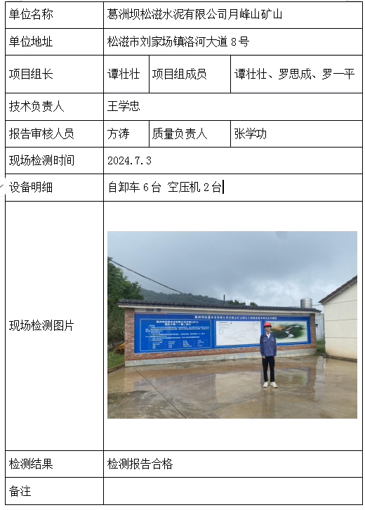 葛洲坝松滋水泥有限公司月峰山矿山2026/04/102024年检测检验项目 00 上一篇: 老河口市鑫耀辉建筑劳务分包有限公司下一篇: 巴东县金德矿业有限公司龙角坝铁矿 相关推荐 黄梅龙源石膏有限公司 2026/04/13 2 查看全文 湖北威泰绿建科技有限公司 2026/04/13 3 查看全文 保康县鑫润矿业有限责任公司康家沟磷矿一采区 2026/04/13 3 查看全文 湖北杉树垭矿业有限公司 2026/04/13 2 查看全文 您好!请登录 点击取消回复 称呼: 邮箱: 点击这里取消回复。