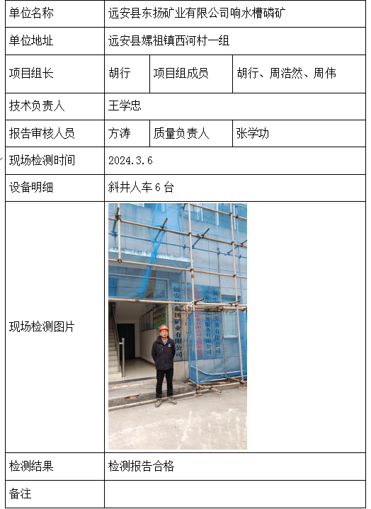 远安县东扬矿业有限公司响水槽磷矿2026/04/102024年检测检验项目 00 上一篇: 湖北东圣化工集团东达矿业有限公司晒旗河磷矿下一篇: 湖北营润矿山建设有限公司房县草池垭矿山项目部 相关推荐 黄梅龙源石膏有限公司 2026/04/13 2 查看全文 湖北威泰绿建科技有限公司 2026/04/13 3 查看全文 保康县鑫润矿业有限责任公司康家沟磷矿一采区 2026/04/13 3 查看全文 湖北杉树垭矿业有限公司 2026/04/13 2 查看全文 您好!请登录 点击取消回复 称呼: 邮箱: 点击这里取消回复。