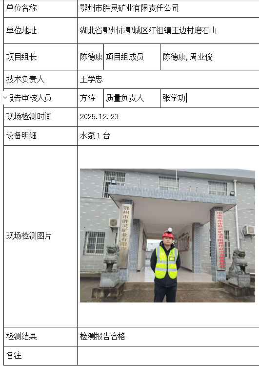 鄂州市胜灵矿业有限责任公司2026/04/102025年检测检验项目 20 上一篇: 大冶市陈贵安船矿业有限公司下一篇: 湖北正英矿业股份有限公司 相关推荐 长阳县勒石包方解石矿 2026/04/10 8 查看全文 大冶市灵乡正旺铁矿二采区 2026/04/10 5 查看全文 大冶市陈贵安船矿业有限公司 2026/04/10 10 查看全文 保康楚烽化工有限责任公司(楚烽磷矿) 2026/04/10 7 查看全文 您好!请登录 点击取消回复 称呼: 邮箱: 点击这里取消回复。
