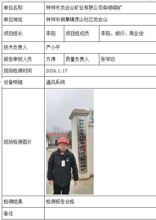 钟祥市龙会山矿业有限公司柴胡磷矿2026/04/102024年检测检验项目 00 上一篇: 长阳土家族自治县大水泉方解石矿下一篇: 京山阜储工贸实业有限公司 相关推荐 黄梅龙源石膏有限公司 2026/04/13 2 查看全文 湖北威泰绿建科技有限公司 2026/04/13 3 查看全文 保康县鑫润矿业有限责任公司康家沟磷矿一采区 2026/04/13 3 查看全文 湖北杉树垭矿业有限公司 2026/04/13 2 查看全文 您好!请登录 点击取消回复 称呼: 邮箱: 点击这里取消回复。