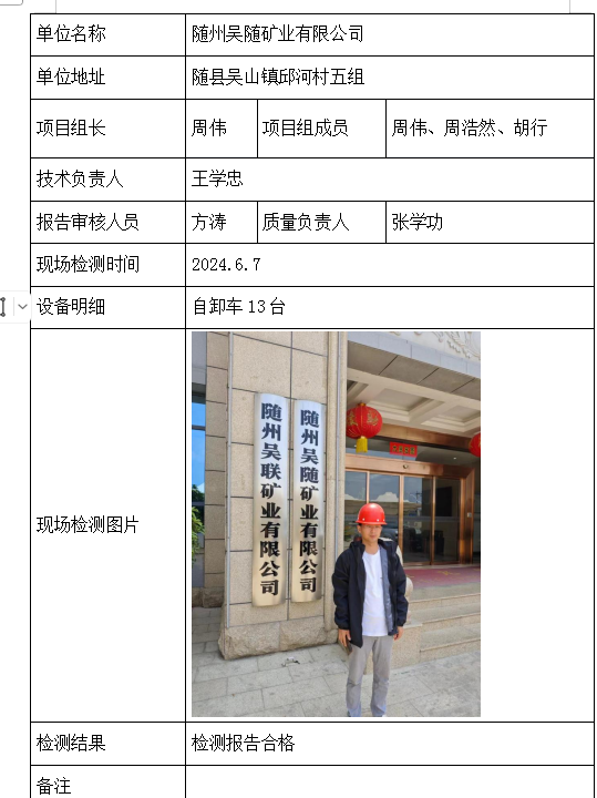 随州吴随矿业有限公司2026/04/102024年检测检验项目 00 上一篇: 湖北京兰水泥集团有限公司下一篇: 黄冈共赢矿产实业发展有限公司 相关推荐 黄梅龙源石膏有限公司 2026/04/13 2 查看全文 湖北威泰绿建科技有限公司 2026/04/13 3 查看全文 保康县鑫润矿业有限责任公司康家沟磷矿一采区 2026/04/13 3 查看全文 湖北杉树垭矿业有限公司 2026/04/13 2 查看全文 您好!请登录 点击取消回复 称呼: 邮箱: 点击这里取消回复。
