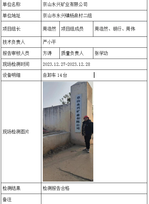 京山永兴矿业有限公司2026/04/132023年检测检验项目 10 上一篇: 贵州省宏安建筑工程有限责任公司湖北分公司下一篇: 京山易和矿业有限公司 相关推荐 黄梅龙源石膏有限公司 2026/04/13 1 查看全文 安徽中掘建设工程有限公司武穴分公司 2026/04/13 0 查看全文 华新骨料(阳新)有限公司 2026/04/13 0 查看全文 钟祥市秦冲磷矿刘冲采区 2026/04/13 0 查看全文 您好!请登录 点击取消回复 称呼: 邮箱: 点击这里取消回复。