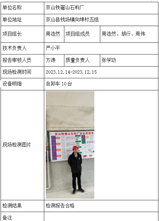 京山铁箍山石料厂2026/04/132023年检测检验项目 20 上一篇: 华新金龙水泥(郧县)有限公司大柳丰收石灰石矿下一篇: 京山吕冲矿业有限公司 相关推荐 黄梅龙源石膏有限公司 2026/04/13 1 查看全文 安徽中掘建设工程有限公司武穴分公司 2026/04/13 1 查看全文 华新骨料(阳新)有限公司 2026/04/13 1 查看全文 钟祥市秦冲磷矿刘冲采区 2026/04/13 1 查看全文 您好!请登录 点击取消回复 称呼: 邮箱: 点击这里取消回复。