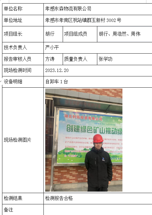 孝感东森物流有限公司2026/04/132023年检测检验项目 00 上一篇: 安福县新福矿业有限责任公司下一篇: 吉安县学海矿业有限公司 相关推荐 黄梅龙源石膏有限公司 2026/04/13 1 查看全文 安徽中掘建设工程有限公司武穴分公司 2026/04/13 1 查看全文 华新骨料(阳新)有限公司 2026/04/13 1 查看全文 钟祥市秦冲磷矿刘冲采区 2026/04/13 1 查看全文 您好!请登录 点击取消回复 称呼: 邮箱: 点击这里取消回复。