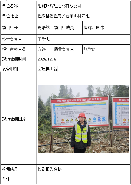 恩施州辉旺石材有限公司2026/04/132024年检测检验项目 00 上一篇: 建始花坪福焱石业有限责任公司下一篇: 保康县保丰矿业有限公司石灰山磷矿袁家沟矿井 相关推荐 黄梅龙源石膏有限公司 2026/04/13 2 查看全文 湖北威泰绿建科技有限公司 2026/04/13 3 查看全文 保康县鑫润矿业有限责任公司康家沟磷矿一采区 2026/04/13 2 查看全文 湖北杉树垭矿业有限公司 2026/04/13 1 查看全文 您好!请登录 点击取消回复 称呼: 邮箱: 点击这里取消回复。