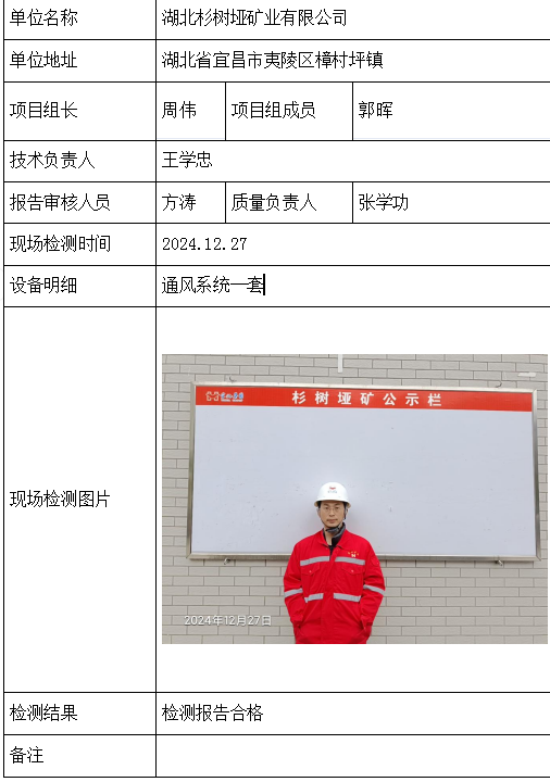 湖北杉树垭矿业有限公司2026/04/132024年检测检验项目 10 上一篇: 宜昌宜化殷家坪矿业有限公司下一篇: 保康县鑫润矿业有限责任公司康家沟磷矿一采区 相关推荐 黄梅龙源石膏有限公司 2026/04/13 1 查看全文 湖北威泰绿建科技有限公司 2026/04/13 2 查看全文 保康县鑫润矿业有限责任公司康家沟磷矿一采区 2026/04/13 1 查看全文 宜昌宜化殷家坪矿业有限公司 2026/04/13 0 查看全文 您好!请登录 点击取消回复 称呼: 邮箱: 点击这里取消回复。