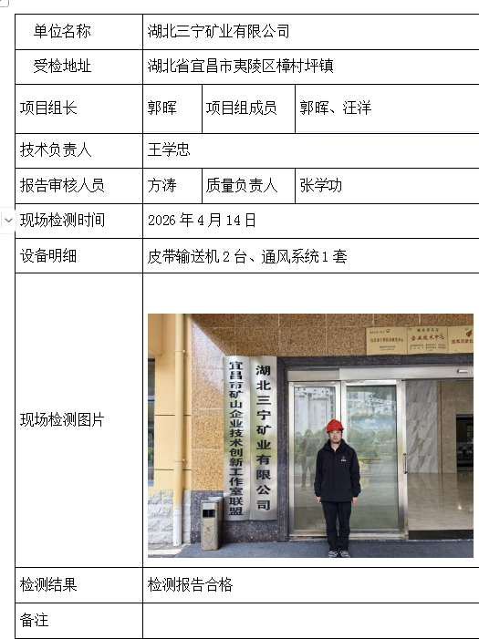 湖北三宁矿业有限公司2026/04/172026年检测检验项目 00 上一篇: 湖北创胜工程设计有限公司下一篇: 随州市金泰矿业有限公司 相关推荐 宜昌兴臣爆破工程有限公司南沟磷矿项目部 2026/04/17 1 查看全文 湖北三鑫金铜股份有限公司 2026/04/17 0 查看全文 湖北信佳建设工程有限公司驻大杉树磷矿项目部 2026/04/17 0 查看全文 湖北三宁矿业有限公司挑水河磷矿东部矿段909工区 2026/04/17 1 查看全文 您好!请登录 点击取消回复 称呼: 邮箱: 点击这里取消回复。