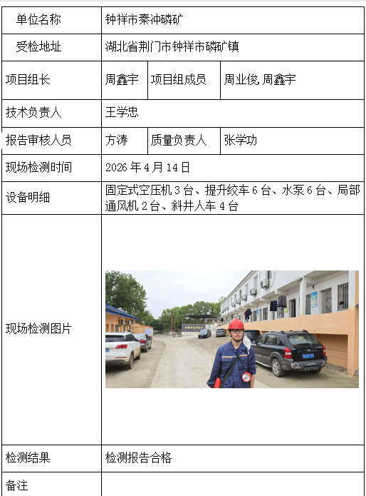 钟祥市秦冲磷矿2026/04/172026年检测检验项目 00 上一篇: 随州市金泰矿业有限公司下一篇: 湖北华灵矿业集团有限公司普庆铁矿 相关推荐 宜昌兴臣爆破工程有限公司南沟磷矿项目部 2026/04/17 1 查看全文 湖北三鑫金铜股份有限公司 2026/04/17 0 查看全文 湖北信佳建设工程有限公司驻大杉树磷矿项目部 2026/04/17 0 查看全文 湖北三宁矿业有限公司挑水河磷矿东部矿段909工区 2026/04/17 1 查看全文 您好!请登录 点击取消回复 称呼: 邮箱: 点击这里取消回复。